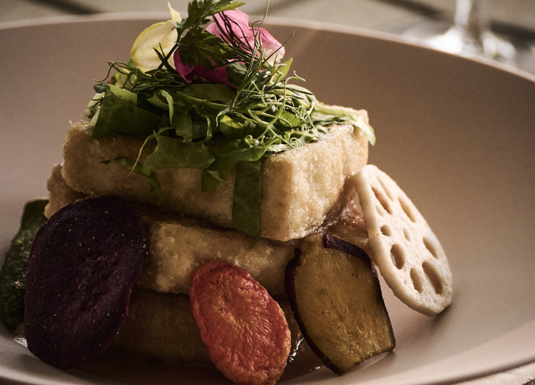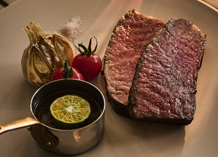 グリルの前に楽しむ前菜には、地元の海や畑の恵みを生かした小皿が並びます。宮古島近海のシーフードや、低温調理でやわらかく仕上げた宮古牛など、素材そのものの旨みを感じられるシンプルな味わい。